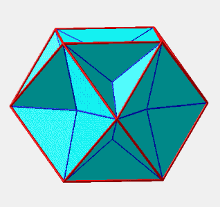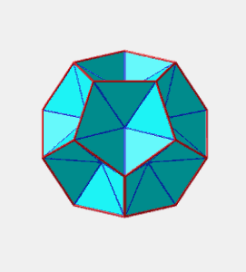On passe de l'icosèdre à un dodécaèdre en passant par un hexacontaèdre semi-régulier.