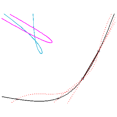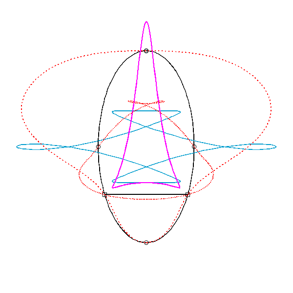 Puis on détermine le mouvement dual qui est donc le mouvement d'un plan lié à un segment de longueur fixe se déplaçant sur une conique.