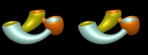 Pour visualiser l'objet en vision croisée, loucher en regardant le couple d'images : on voit une troisième image au milieu ; faire le point sur cette dernière jusqu'à ce qu'elle devienne nette ... et en relief !